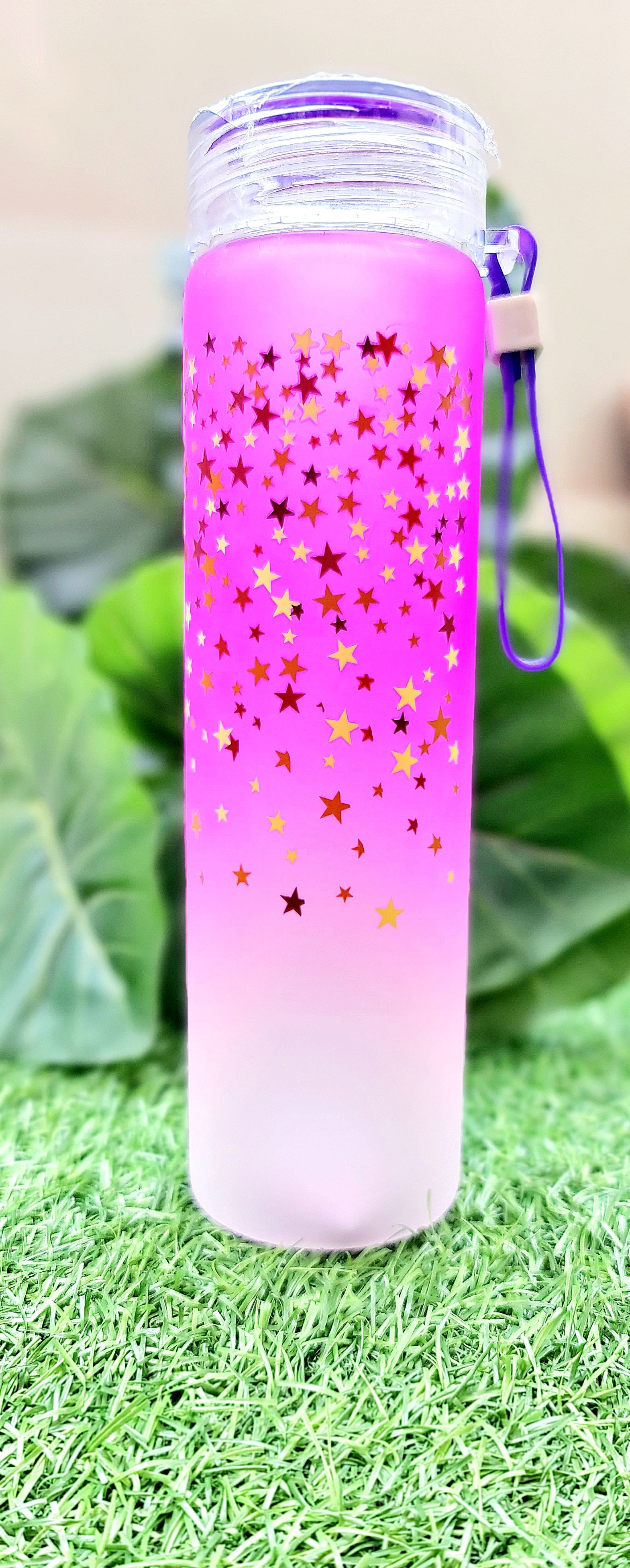 Pink Twilight Glass Sparkle Water Bottle